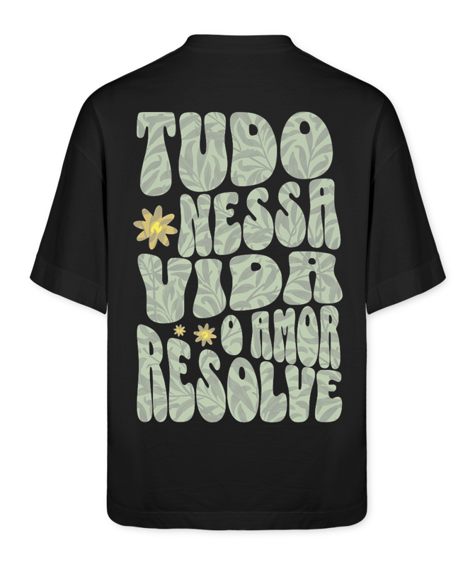 Tudo nessa vida o amor resolve. Uma peça que carrega a leveza do essencial: quando a vibe é boa e o coração tá em paz, o resto encontra o caminho. Informações Técnicas: Camiseta da linha Heavyweight Super Oversized, feita em 100% algodão, com meia malha Heavywear fio 20 e efeito de lavanderia que garante toque premium. Possui gola 2,5 cm canelada, reforço ombro a ombro e gramatura de 220 g/m², entregando caimento estruturado e durabilidade.