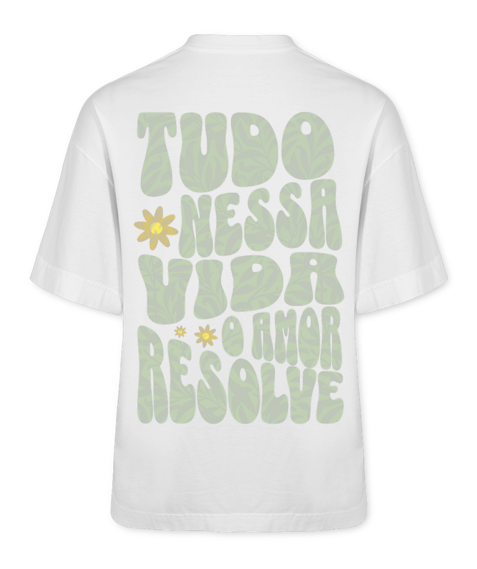 Tudo nessa vida o amor resolve. Uma peça que carrega a leveza do essencial: quando a vibe é boa e o coração tá em paz, o resto encontra o caminho. Informações Técnicas: Camiseta da linha Heavyweight Super Oversized, feita em 100% algodão, com meia malha Heavywear fio 20 e efeito de lavanderia que garante toque premium. Possui gola 2,5 cm canelada, reforço ombro a ombro e gramatura de 220 g/m², entregando caimento estruturado e durabilidade.